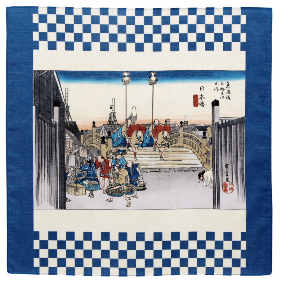 江戸時代の浮世絵師「歌川広重」の東海道五拾三次:日本橋を描いたハンカチです。