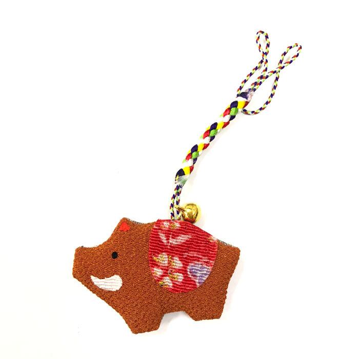 根付 干支 根付ストラップ 日本製 龍虎謹製 かわいい 干支ストラップ 西陣織 ちりめんストラップ 帯飾り 亥 いのしし ストラップ ねつけ 鈴付き 和雑貨 和小物 ちりめん雑貨 手作り 干支雑貨 | kimonoroman YUKIYA