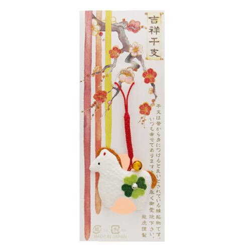 <予約>【送料無料】干支ストラップ うま ちりめん根付け 干支 午 吉祥干支 根付ストラップ 日本製 手作り ちりめんストラップ 帯飾り ストラップ ねつけ 鈴付き ちりめん雑貨 2026年 干支雑貨 ラインストーン付き クローバー r-201